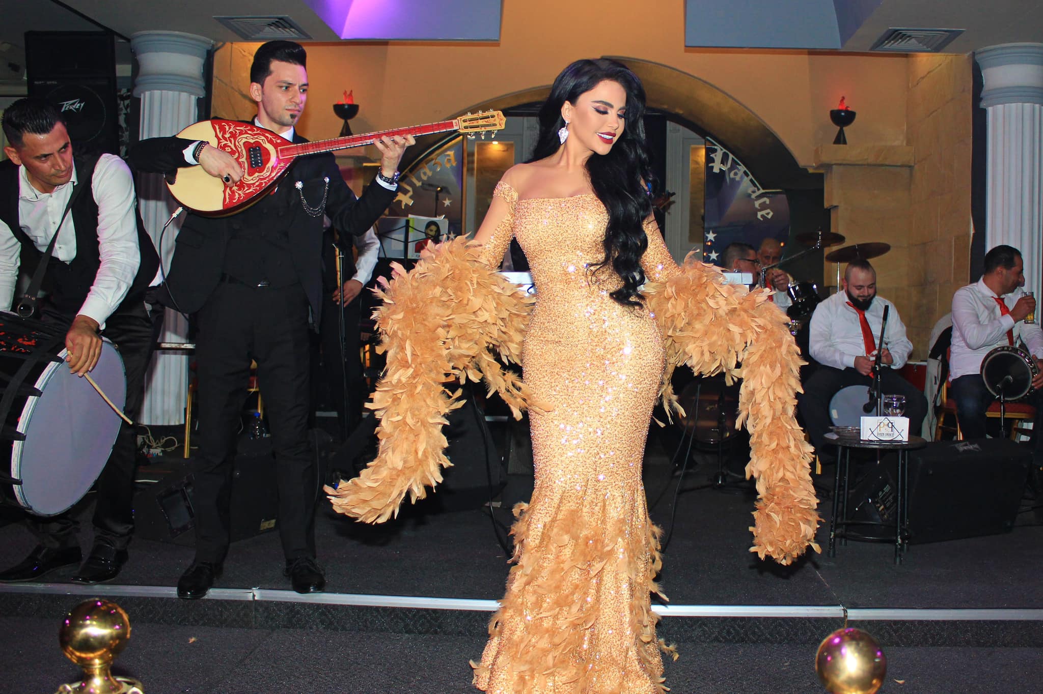 وقد تألقت خلال الحفل بفستان باللون البيج الغامق ابهرت فيه الحضور، وقد اطربتهم بباقة من اغنياتها الجميلة وترافقت معها فرقة الدبكة حيث اشعلت اجواء ليلة رأس السنة.