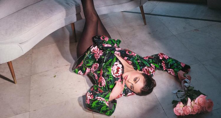 وظهرت الديفا هيفا وهي ممسكة بالورود مرتدية فستانا بطباعات لنفس الورود.