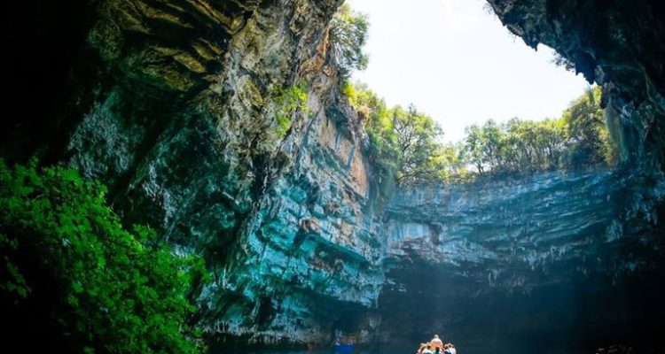 واحدة من أجمل البحيرات الجوفية في العالم، تقع هذه البحيرة في كهف بجزيرة كيفالونيا، وعندما تخترق أشعة الشمس صخور الكهف يأخذ سطح الماء آلاف من الإنعكاسات تجعل المكان مُزين بألوان لا تصدق.