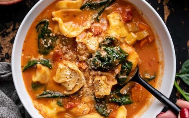 هذه الشوربة، في جوهرها، بسيطة للغاية، لكن مكوناتها تُضفي عليها نكهةً رائعة. شوربة التورتيليني الكريمية هذه هي طبقٌ دسمٌ سيُشبعك. تبدأ بمزيجٍ كلاسيكي من البصل والجزر والكرفس والثوم، ثم تُضاف إليها معجون الطماطم الغني والطماطم المهروسة لإضفاء نكهةٍ غنية. تورتيليني الجبن تُضفي عليها مذاقًا مُرضيًا، وتلك النكهة الخفيفة من الكريمة في النهاية تُكمل مذاقها. إنها بسيطة ومُشبعة، وهي بالضبط نوع الوجبة التي أحبها عندما أرغب في طبقٍ سهلٍ ولذيذٍ في نفس الوقت.