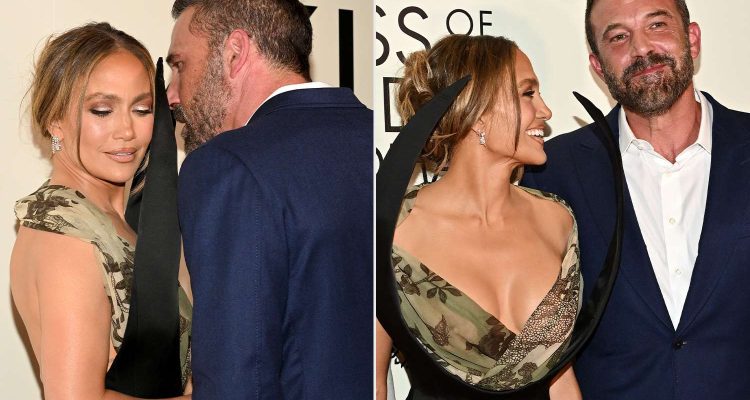 في لحظة ما، انحنى أفليك، البالغ من العمر 53 عامًا، ليتحدث في أذن لوبيز خلال لحظة حميمة على السجادة الحمراء.