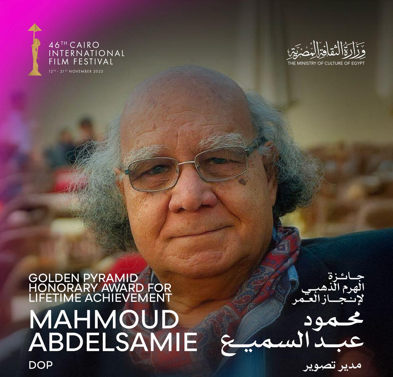 أعلن مهرجان القاهرة السينمائي الدولي تكريم المدير التصوير السينمائي الكبير محمود عبد السميع بجائزة الهرم الذهبي لإنجاز العمر في دورته الـ46، التي تقام في الفترة من 12 إلى 21 نوفمبر 2025. اعترافًا بإسهاماته الكبيرة في عالم التصوير، بعشرات الأفلام التسجيلية والروائية التي أضافت عمقًا وثراءً للسينما المصرية