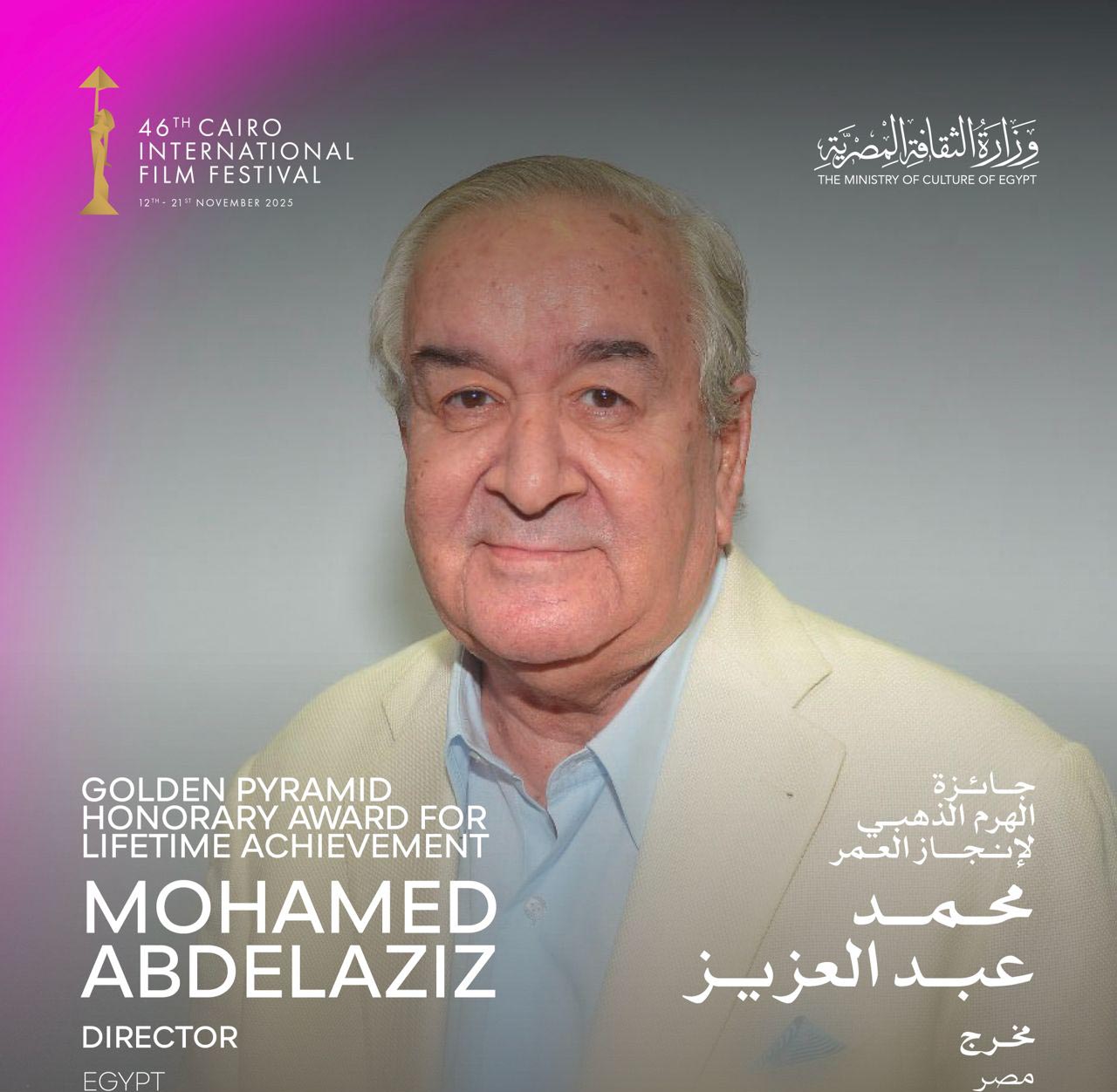 أعلن مهرجان القاهرة السينمائي الدولي تكريم المخرج محمد عبد العزيز بالهرم الذهبي لإنجاز العمر في دورته الـ46، التي تقام في الفترة من 12 إلى 21 نوفمبر 2025. احتفاء بتاريخه السينمائي الكبير كأحد أبرز مخرجي السينما المصرية والذي تمتد مسيرته لأكثر من خمسين عاما.