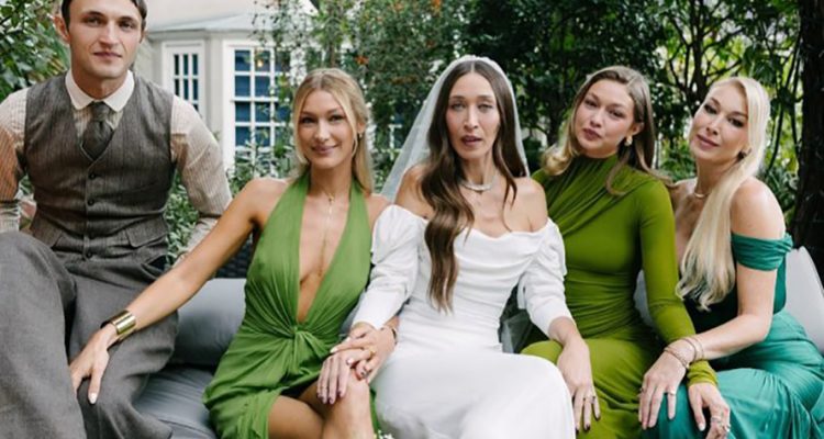 بينما كانت آلانا حديد مذهلة في إطلالة زفافها بفستان أبيض كلاسيكي؛ لفتت وصيفتاها -بيلا وجيجي حديد– الأنظار إليهما بإطلالتهما، حيث ارتدت بيلا فستاناً أنيقاً منخفض الخصر مع ثنيات على الصدر وشق يصل إلى الفخذ في تنورتها المكشكشة. في الوقت نفسه، اختارت جيجي فستاناً ماكسي عالي الرقبة بأكمام منسدلة مزينة بأساور ذهبية. وقد عكست إطلالتهما أسلوباً مريحاً ومتناسقاً في آنٍ واحد.