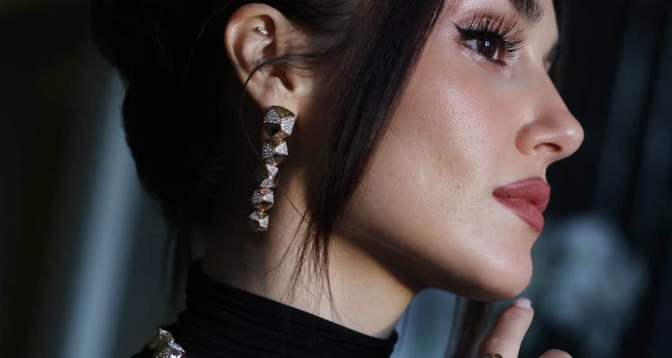 ومن الناحية الجمالية، اعتمدت هاندا على تسريحة ناعمة، ورفعت شعرها بالكامل بحركة “كعكة” مع غرة أمامية لإبراز جمال المجوهرات وفخامتها، وطبقت مكياجاً ناعماً يرتكز على الألوان الترابية البراقة مع احمر شفاه أحمر بارز يناسب اطلالتها.