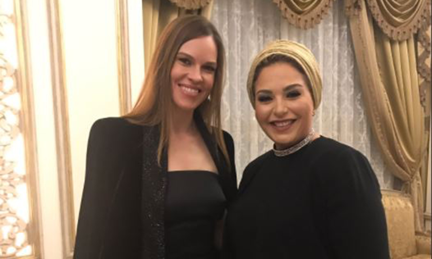 نشرت الفنانة صابرين، صورة تجمعها بالممثلة الأمريكية، هيلاري سوانك، والتي تم التقاطها على هامش ختام مهرجان القاهرة السينمائي أمس الخميس.